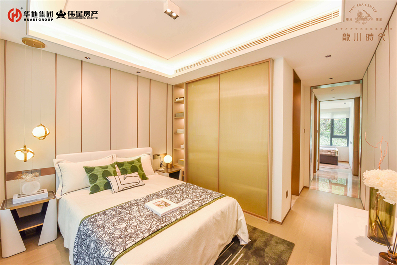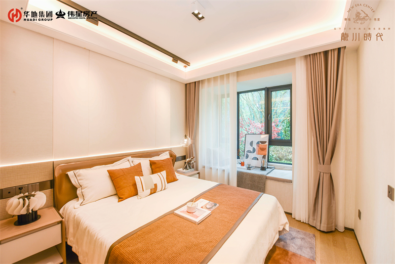 樣板間以金棕灰和落日咖為基調,色彩上彰顯出新青年的活力,空間格局上,最大化延展實用功能,是二人世界到三口之家的舒居優選。三開間大面寬采光,陽光清風常伴家中獨立書房,滿足家庭需求變化,兒童房、興趣室隨心創改。89㎡戶型中,寬境主臥是其一大亮點,不僅貼心地預留了衣柜的位置,還額外增加景觀飄窗的空間巧思,增加室內采光的同時,還賦予空間更多使用面積。