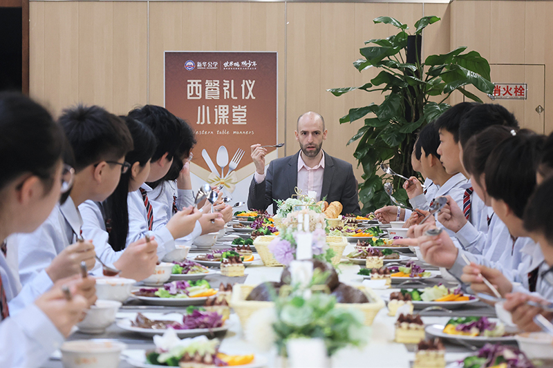 學(xué)校以研究性學(xué)習(xí)為手段,以探究性合作為提升點,以跨學(xué)科融合為思維訓(xùn)練模式,結(jié)合學(xué)科教學(xué)本身特點和規(guī)律深入開展“項目制學(xué)習(xí)”(PBL),促進學(xué)生學(xué)養(yǎng)、素養(yǎng)、品位的全面提升。同時,積極構(gòu)建科、藝、體、衛(wèi)、人文融合校本課程,培養(yǎng)興趣、發(fā)展特長、形成專長,提高學(xué)習(xí)能力和綜合素養(yǎng),推動育人高質(zhì)量發(fā)展。目前,學(xué)校已形成種類更多,層次更高,特色更明的ECP課程體系,在滿足學(xué)生學(xué)習(xí)需要的同時,培養(yǎng)興趣、發(fā)展特長、形成專長。學(xué)校鼓勵教師弘揚“文雅、優(yōu)雅、高雅”三雅氣質(zhì),讓教師爭做學(xué)生喜歡和敬佩的老師,倡導(dǎo)學(xué)生展現(xiàn)“禮貌、禮儀、禮節(jié)”三禮風(fēng)采,讓學(xué)生找到好孩子的感覺,增強學(xué)校內(nèi)生活力。學(xué)校獨創(chuàng)的西餐禮儀小課堂,實現(xiàn)禮儀教育“課程化”,每個孩子收獲的不僅有知識、樂趣、體驗,還有詩和遠(yuǎn)方的品位,學(xué)生喜歡,家長贊嘆。