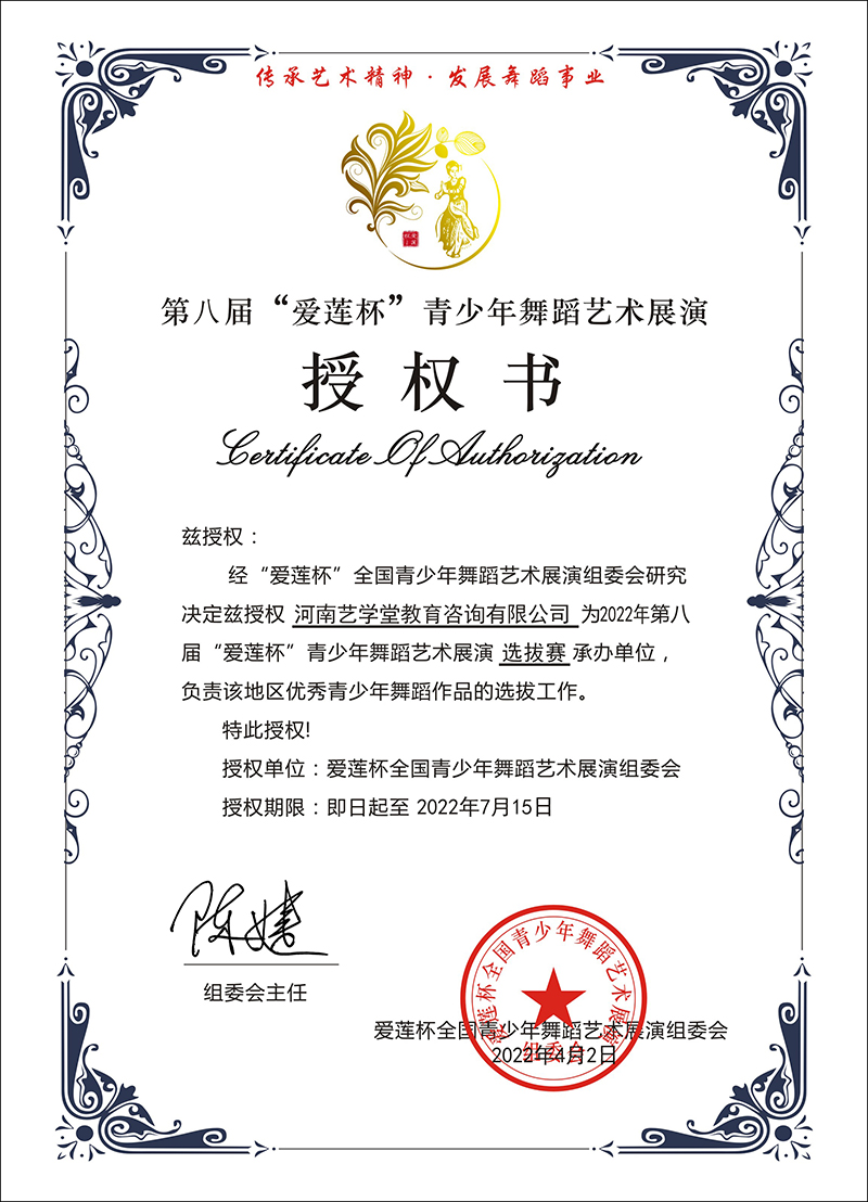 近日,河南藝學(xué)堂被授予“曹燦杯”全國(guó)青少年朗誦展示活動(dòng)優(yōu)秀合作單位、2022年第八屆“愛(ài)蓮杯”青少年舞蹈藝術(shù)展演選拔賽承辦單位稱號(hào)。