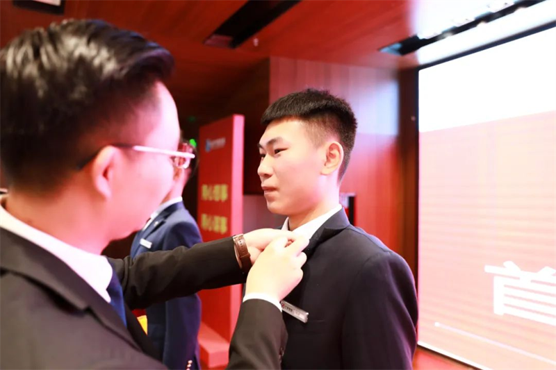 華地好生活集團總經(jīng)理羅星星為優(yōu)秀學(xué)員佩戴郁金香徽章
