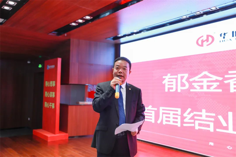 華地好生活集團董事長管玉社為優(yōu)秀學(xué)員佩戴郁金香徽章