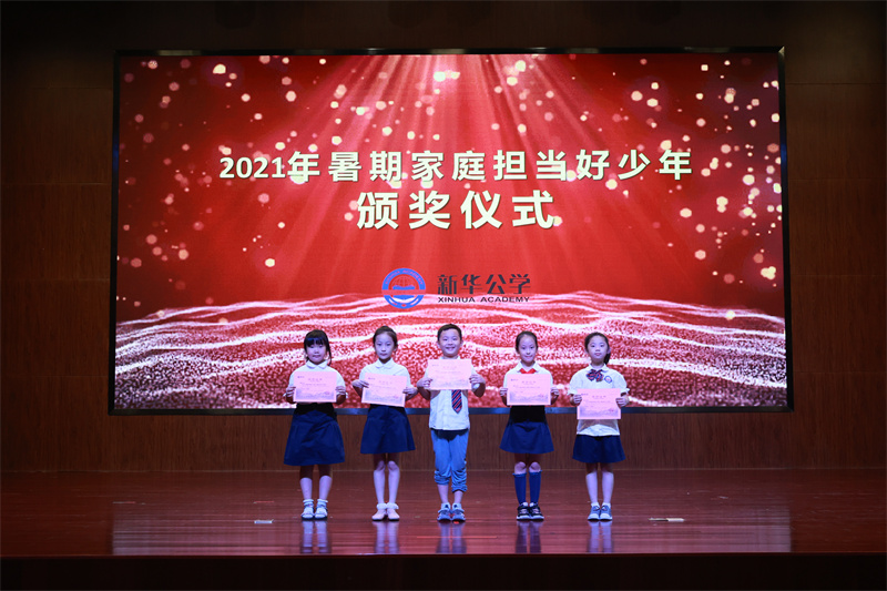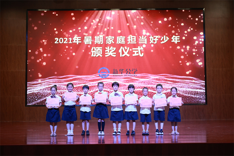 今年是建黨100周年,我們每個新華少年都應該成為對家庭對國家對社會有擔當的有為少年!為此,在暑期里,我校小學德育處發出了評選“家庭擔當好少年”的倡議。希望同學們在健康文明、充實而又有意義的假期中成長為有擔當的有為少年,德育處要求每個同學把個人安全放在第一位,充分地體驗社會、家庭生活,感恩社會和父母,接受鍛煉,增長才干。這次評選活動得到了廣大家長們的支持,他們從安全實踐、生活實踐、孝親實踐、讀書實踐、孝親實踐等方面進行積極引導,家校共育,孩子們有了不小的進步,同時家長們也注重收集孩子在活動中的過程性照片,根據家長的評星和推薦,結合學校德育處的考查,最終評出了29位“家庭擔當好少年”。校領導為他們進行了頒獎。