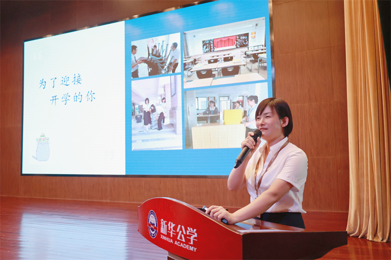當屏幕上出現這些獲獎同學的身影時,同學們都發出了喝彩聲并給與他們熱烈的掌聲,榜樣的力量是巨大的,不少同學都紛紛表示自己也要努力,向他們學習,爭做下一季的“家庭擔當好少年”。在頒獎典禮后,德育主任為全體同學帶來了一場主題為“爭做感動新華人物”的講話。她將平時在校園中用手機記錄下的關于學生的各種良好行為的照片,集結成一組組照片,并用情說出了每個溫暖瞬間背后的故事,“潤物細無聲”,同學們被這樣一個個美好的故事吸引著,感動著。當池主任問“下一個感動新華的會是你嗎”,同學們爭先恐后的給出了肯定的答案。