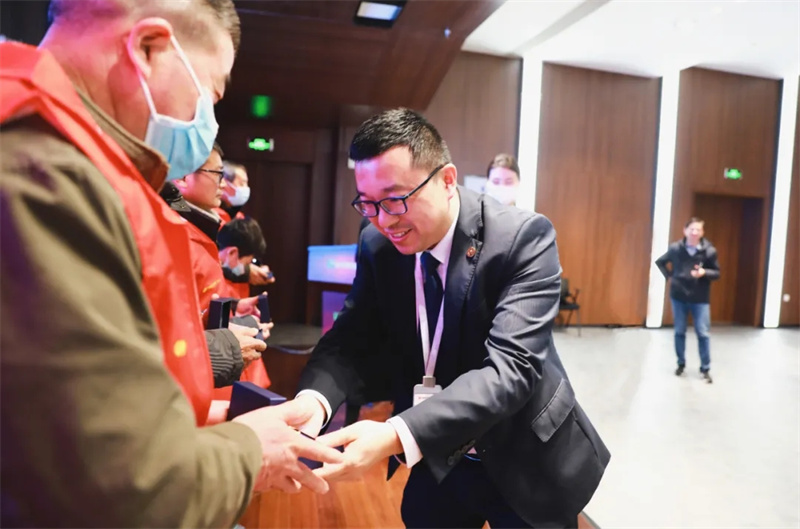 【華地好生活集團副總經(jīng)理蔣凱授予志愿者徽章】
