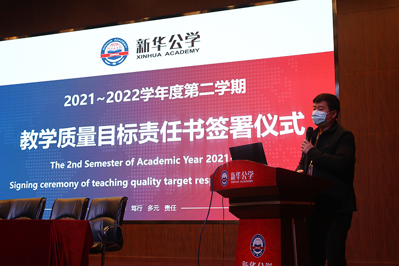 儀式最后,張校長對教育教學工作作了重要部署,他指出:教育教學成績是衡量學校教育教學質量的生命線,是社會關注的焦點,是家長討論的熱點,各位教師應當結合我校小班化教學特色,努力給孩子提供個性化的成長方案,充分做好課程與作業的分層,不能讓目標僅僅寫在紙上,而應將立德樹人的使命目標刻在心底,努力讓每一個孩子都能在新華公學找到歸屬。