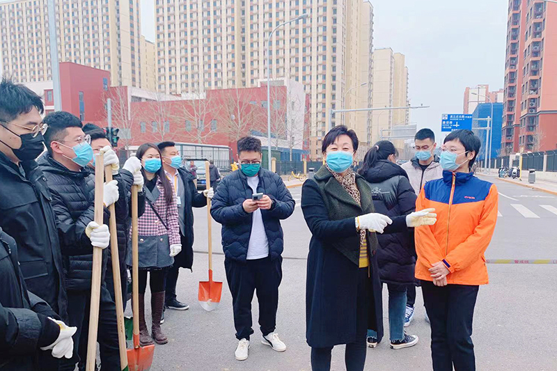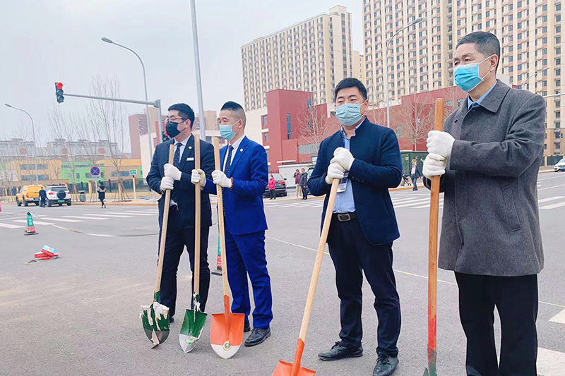 在康潤家園東區鑫立路植樹現場,全員干部齊心協力,每道工序都做得有條不紊,揮鍬鏟土、扶苗填坑、提水澆灌... 大家分工協作,配合默契。