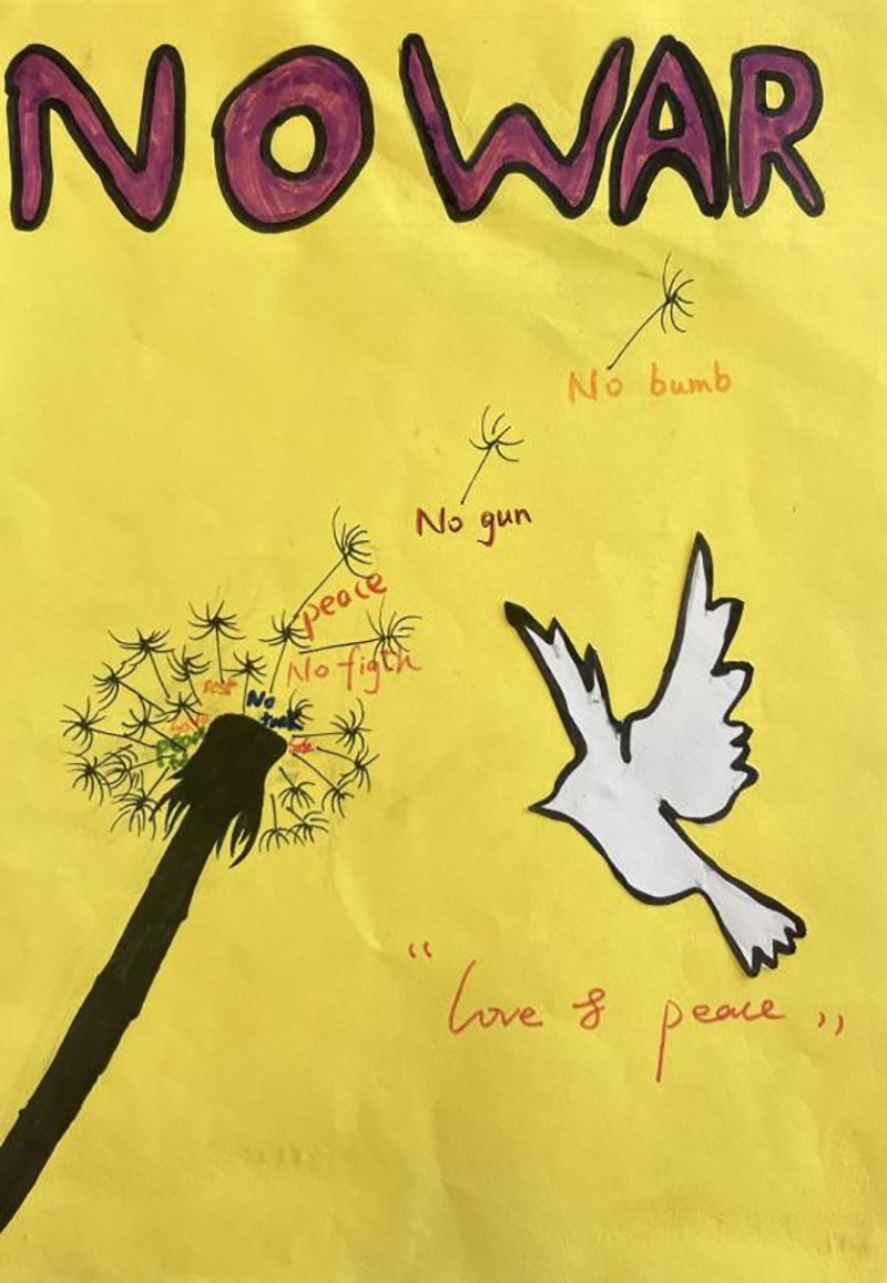 同學們從“防疫、和平、環境、保護動物...等等人文角度,開展了一系列藝術創作。