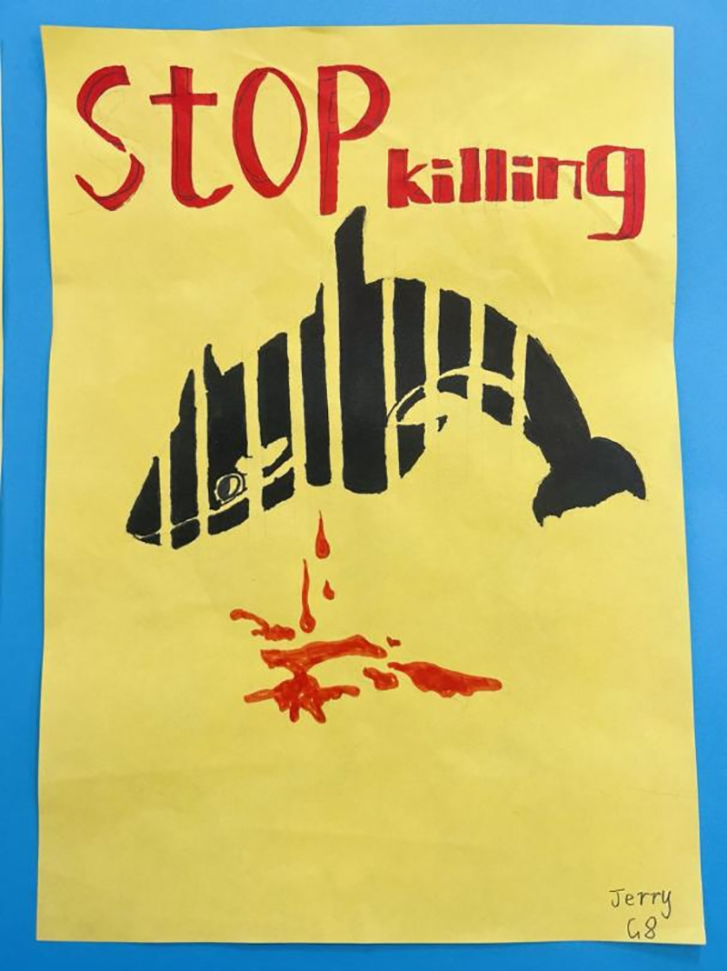 MYP的學生作為05后的新少年群體,已經對世界、對社會開始形成了自己的觀點。用藝術的手法表達人文觀點,并不是一定要規定受眾去做什么事情或不做什么事,而只是作為一種單純的道德疏導工具,進行一種大方向的宏觀勸導。