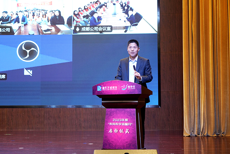 為進(jìn)一步提升各項目教育教學(xué)質(zhì)量,推動教學(xué)理念、方法的改革創(chuàng)新。4月6日,藝學(xué)堂“2023年教育教學(xué)質(zhì)量月”正式啟動。集團(tuán)分管領(lǐng)導(dǎo)董總、藝學(xué)堂領(lǐng)導(dǎo)和合肥區(qū)域全體教師到場參會,鄭州、南昌、成都區(qū)域領(lǐng)導(dǎo)和教師線上參會。