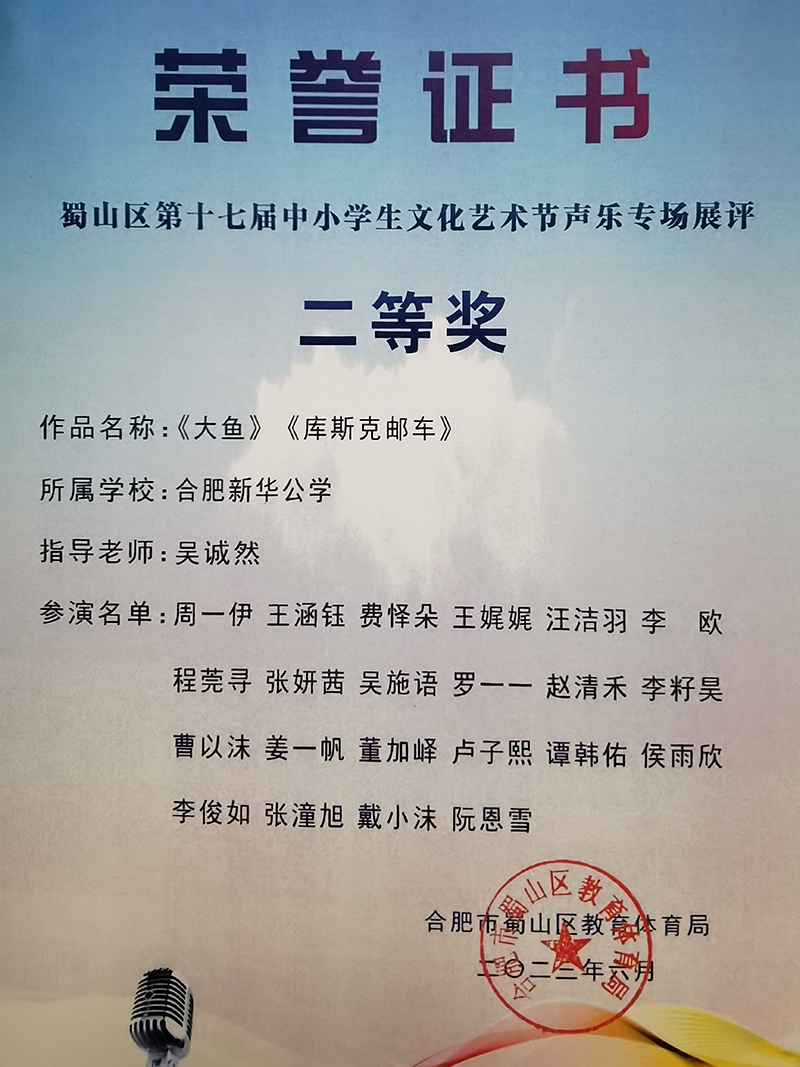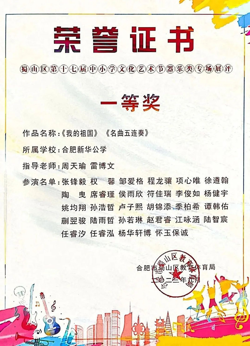春華秋實,不負耕耘。在剛剛結束的合肥市蜀山區(qū)第十七屆中小學文化藝術節(jié)中,新華公學兩支參賽隊伍都表現(xiàn)出色,分別獲得了獲器樂合奏一等獎和聲樂專場展評二等獎的好成績!其中,由28名學生代表組成的青少年交響樂團成功晉級市級比賽,并精心錄制了參賽視頻。