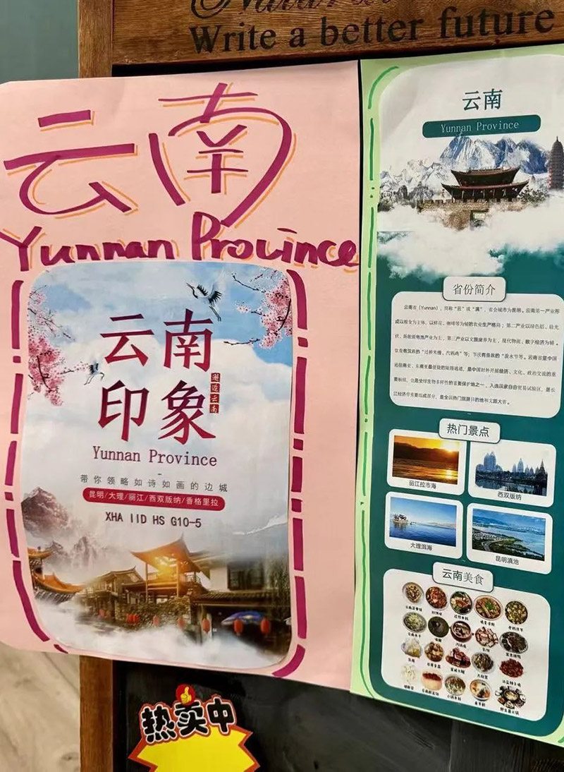 活動(dòng)現(xiàn)場,各班級精心準(zhǔn)備的主題海報(bào)成為了一道亮麗的風(fēng)景線。這些海報(bào)不僅展示了中國各個(gè)省份的獨(dú)特魅力,還融入了豐富的歷史背景、地域特色和美食文化,讓人目不暇接。學(xué)生們紛紛表示,通過這些海報(bào),他們對中華文化的認(rèn)識更加深入,對祖國的熱愛之情也油然而生。