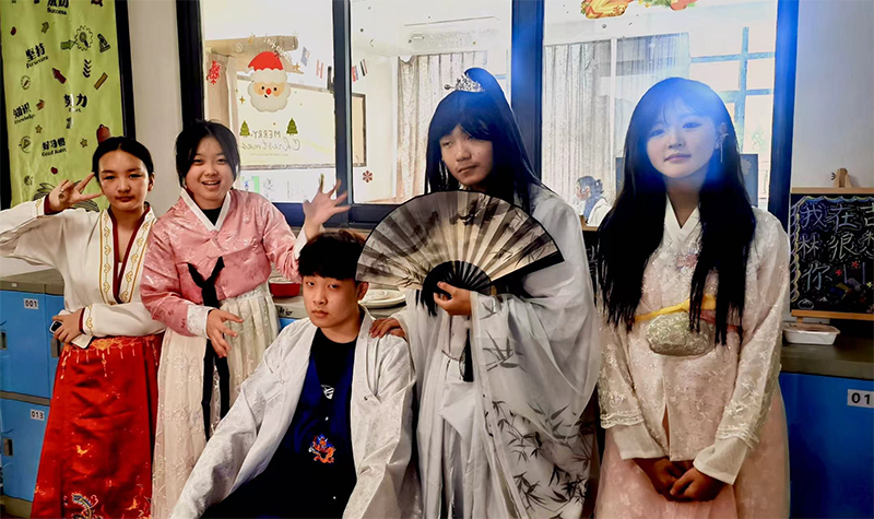 值得一提的是,活動(dòng)還特別設(shè)置了服飾DRESS UP環(huán)節(jié)。學(xué)生們紛紛穿上自己精心挑選的傳統(tǒng)民族服飾(或漢服、旗袍、唐裝等),仿佛穿越時(shí)空,回到了那個(gè)充滿詩意的年代。他們的身影在人群中穿梭,成為了活動(dòng)現(xiàn)場最亮麗的風(fēng)景線。